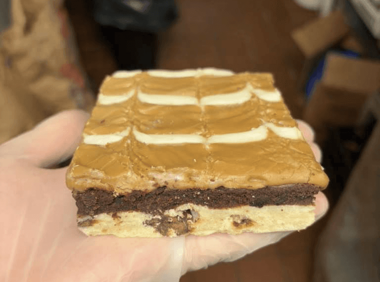 Stacked layers of cookie dough and chocolate brownie. Enjoy the warm, comforting taste of our signature brownie.